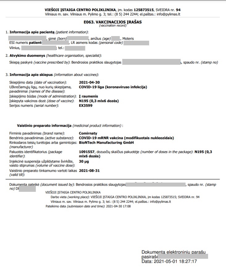 - Lietuvas Republikas Covid-19 apliecinājumu paraugi: